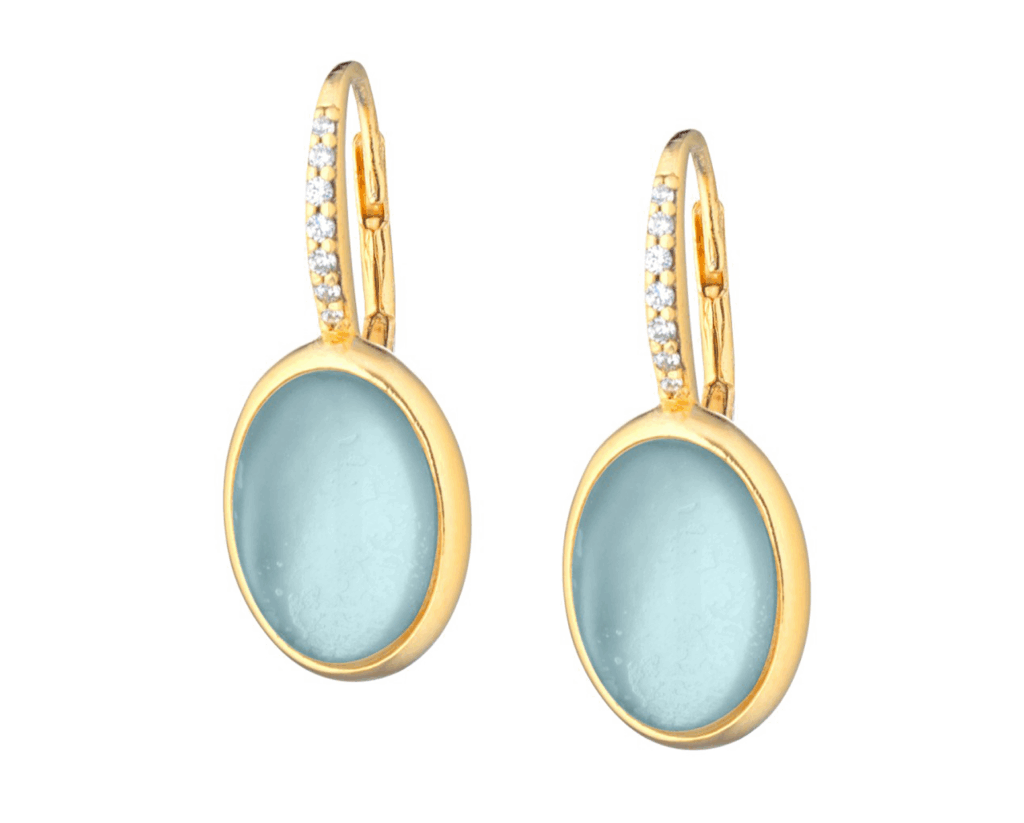 Plata con acabado de Oro Amarillo con 2 Cuarzos aqua y 12 Cuarzos Blancos