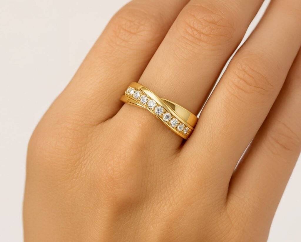 Oro Amarillo 18k, u Oro Blanco 18k, u Oro Rosa 18k, o Platino, con 5 Diamante brillante 3 pt