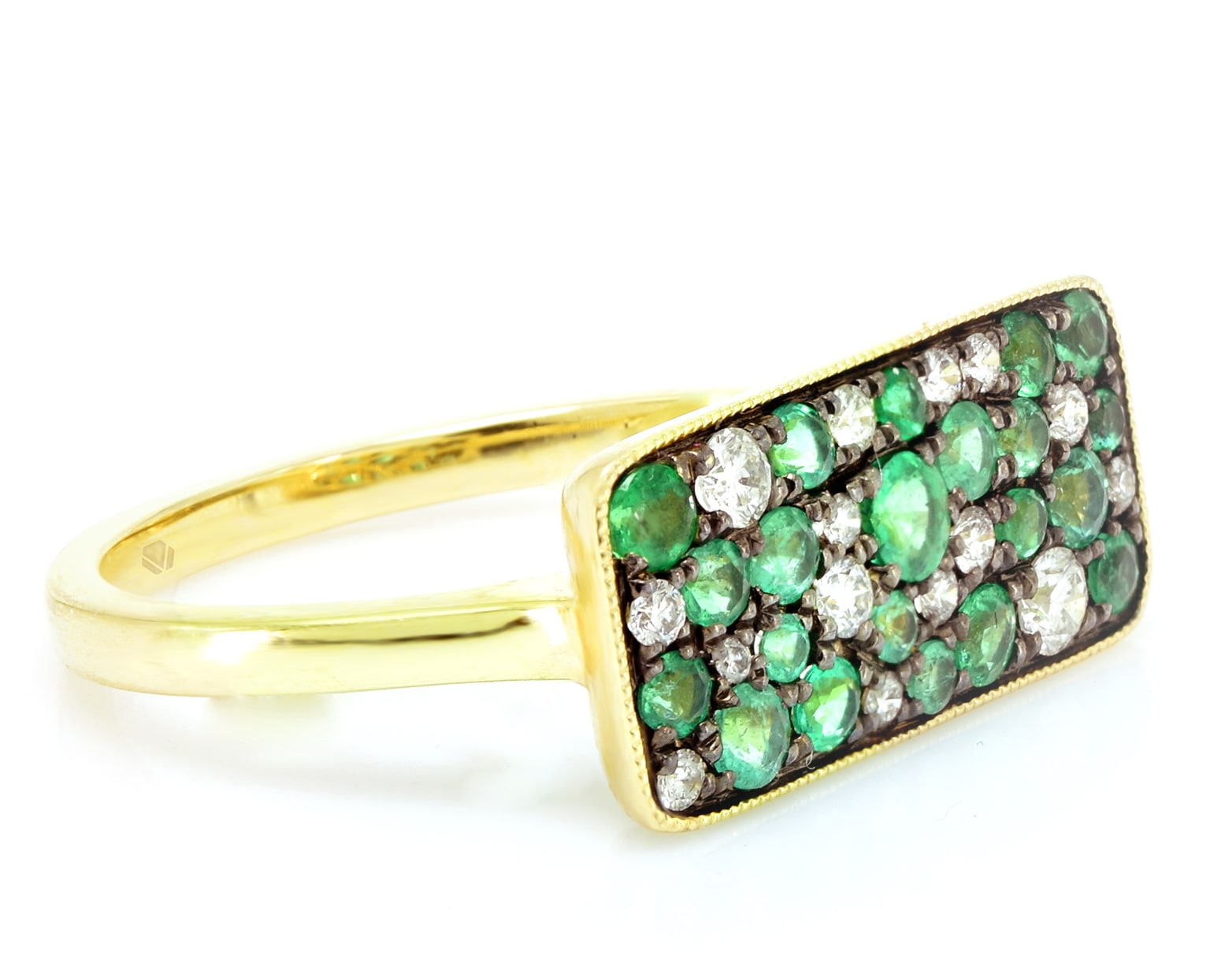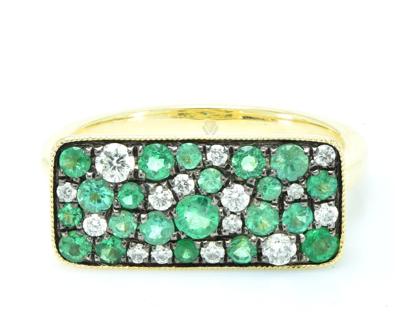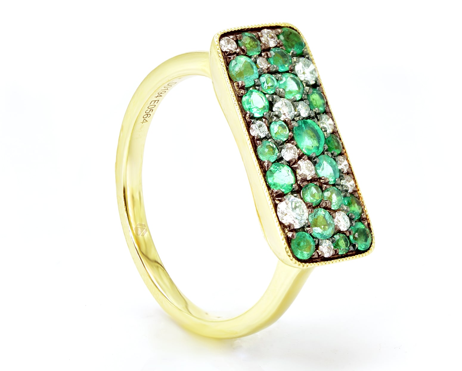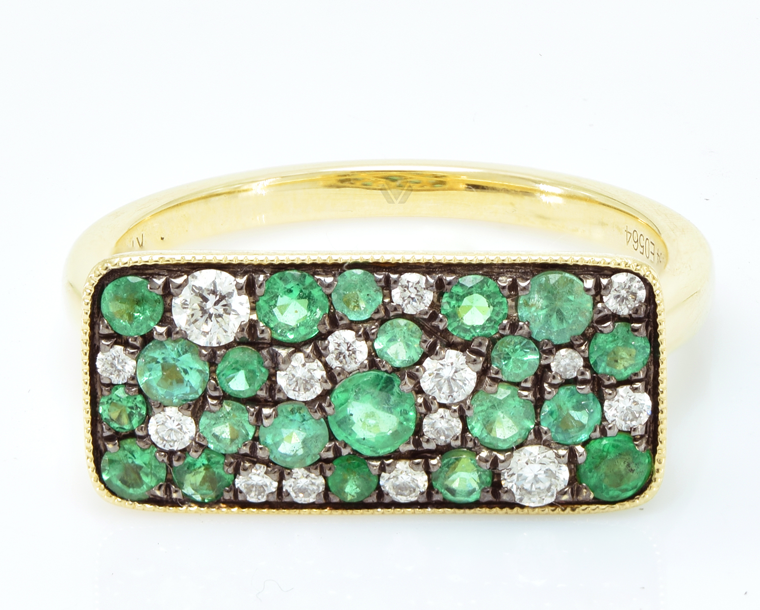 Oro Amarillo 14k con 21 Esmeraldas corte brillante que suman 56 pt y 15 Diamantes corte brillante que suman 2 pt