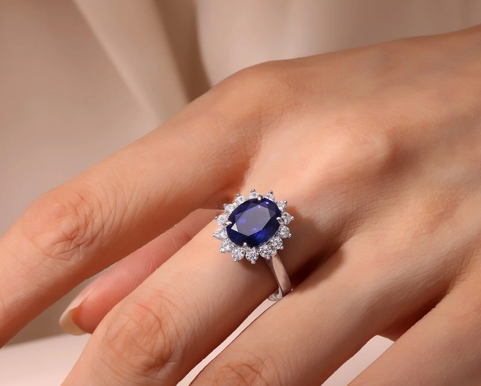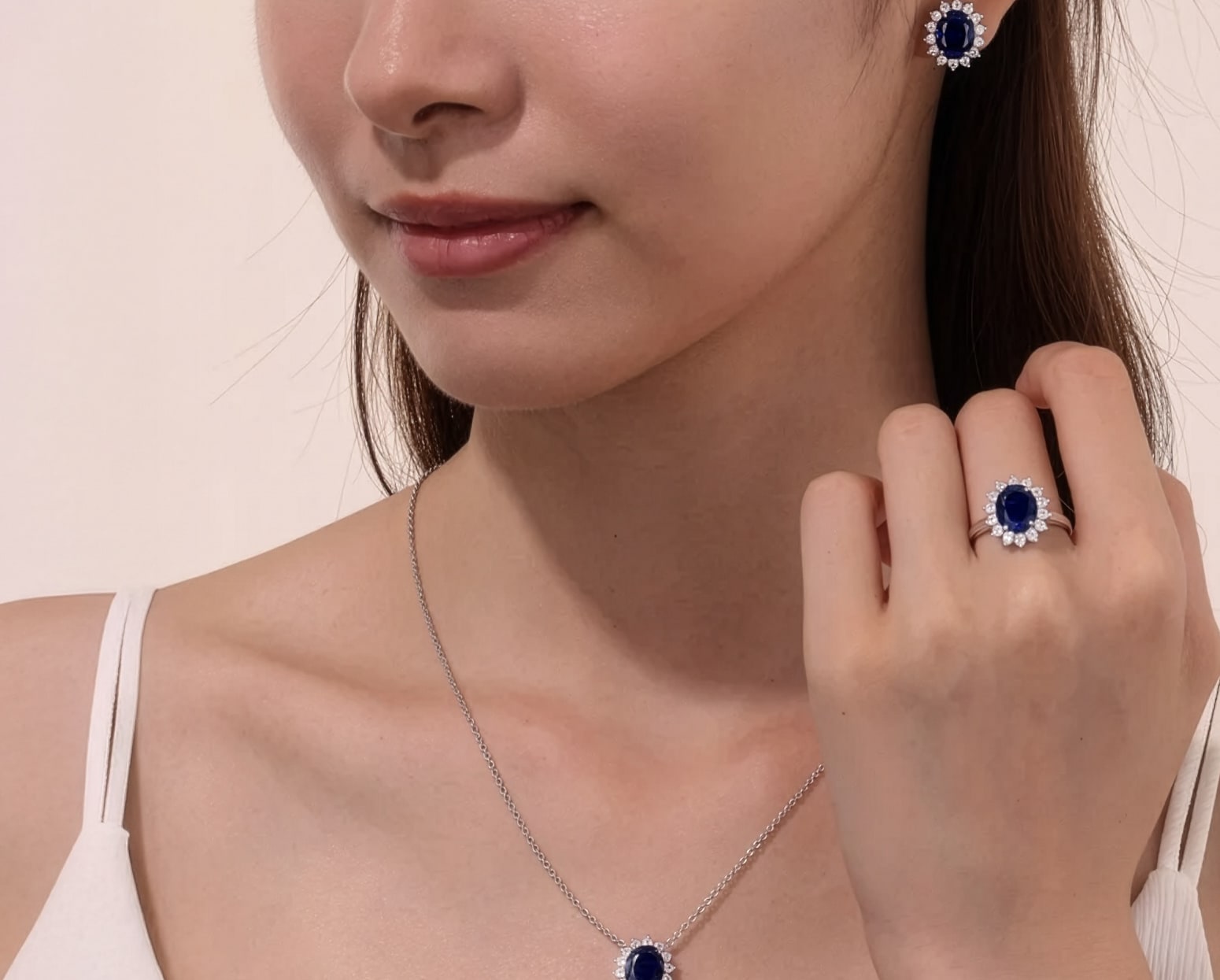 Cada movimiento acaricia la vista con su presencia serena, reminiscente de sueños. La gracia del zafiro resplandece con calidez, plasmando un silencio romántico sobre la piel, mientras su delicado fulgor susurra promesas eternas.