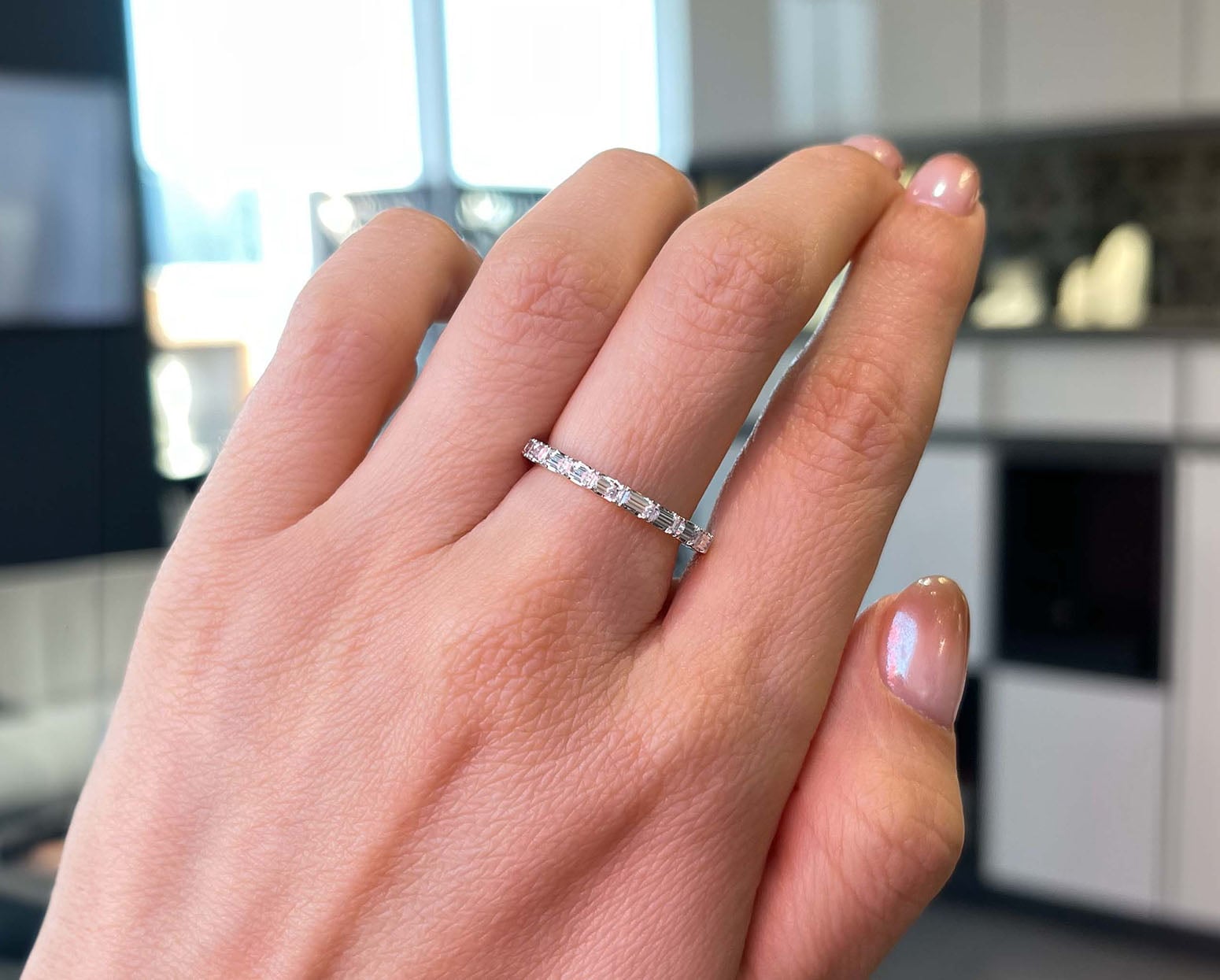 Plata con acabado de Platino con 9 Moisanitas corte baguette que suman 90 pt