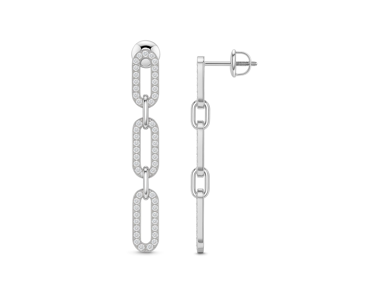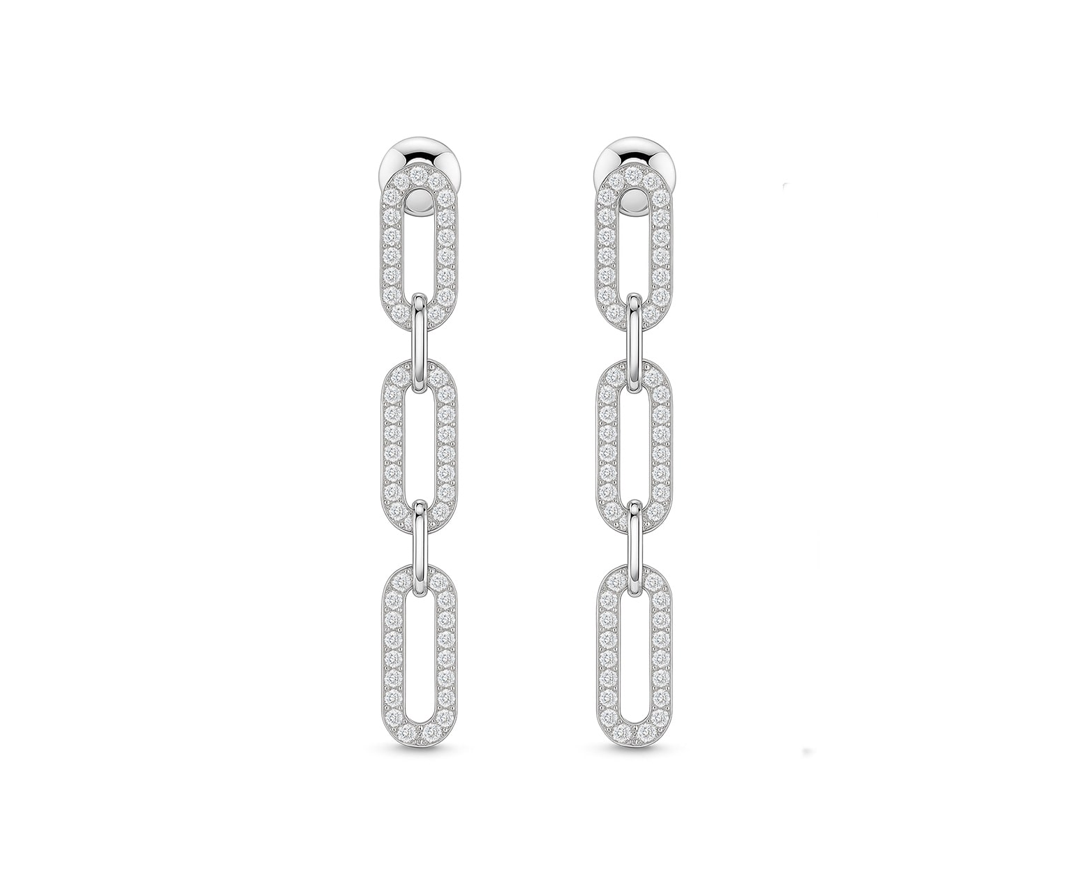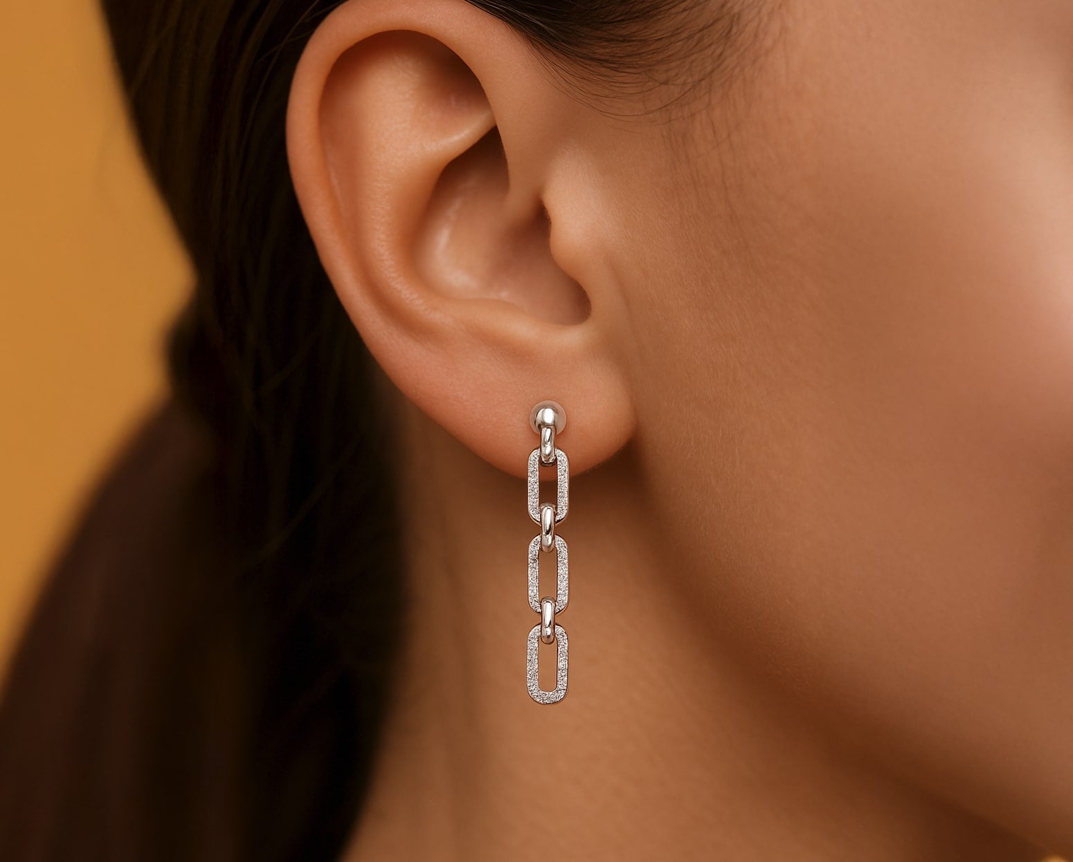 Los Aros Paper Clip Triple susurran un canto de elegancia interconectada, dejando que la luz se disponga a tu alrededor a través de sus eslabones de diamante con corte brillante. Su diseño es como una expresión moderna y sencilla de continuidad, uniendo la fluidez del tiempo con un toque sutil de eternidad.