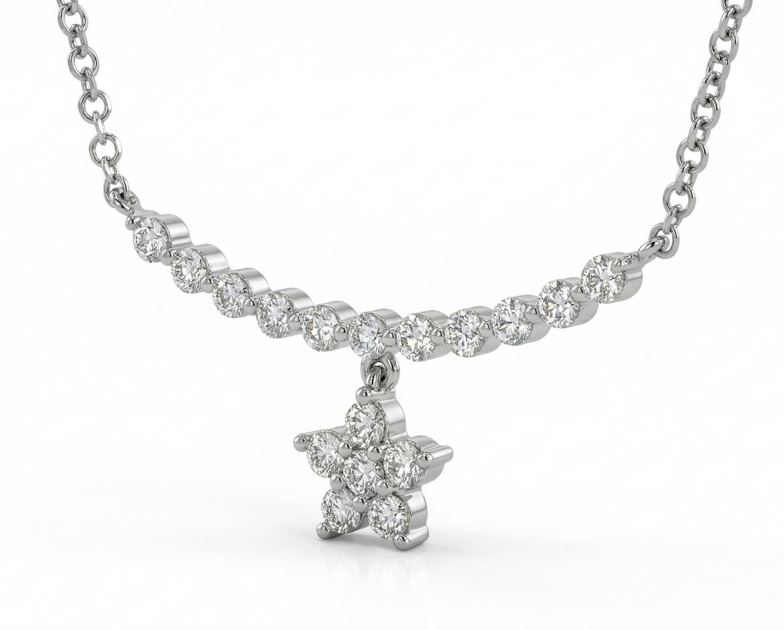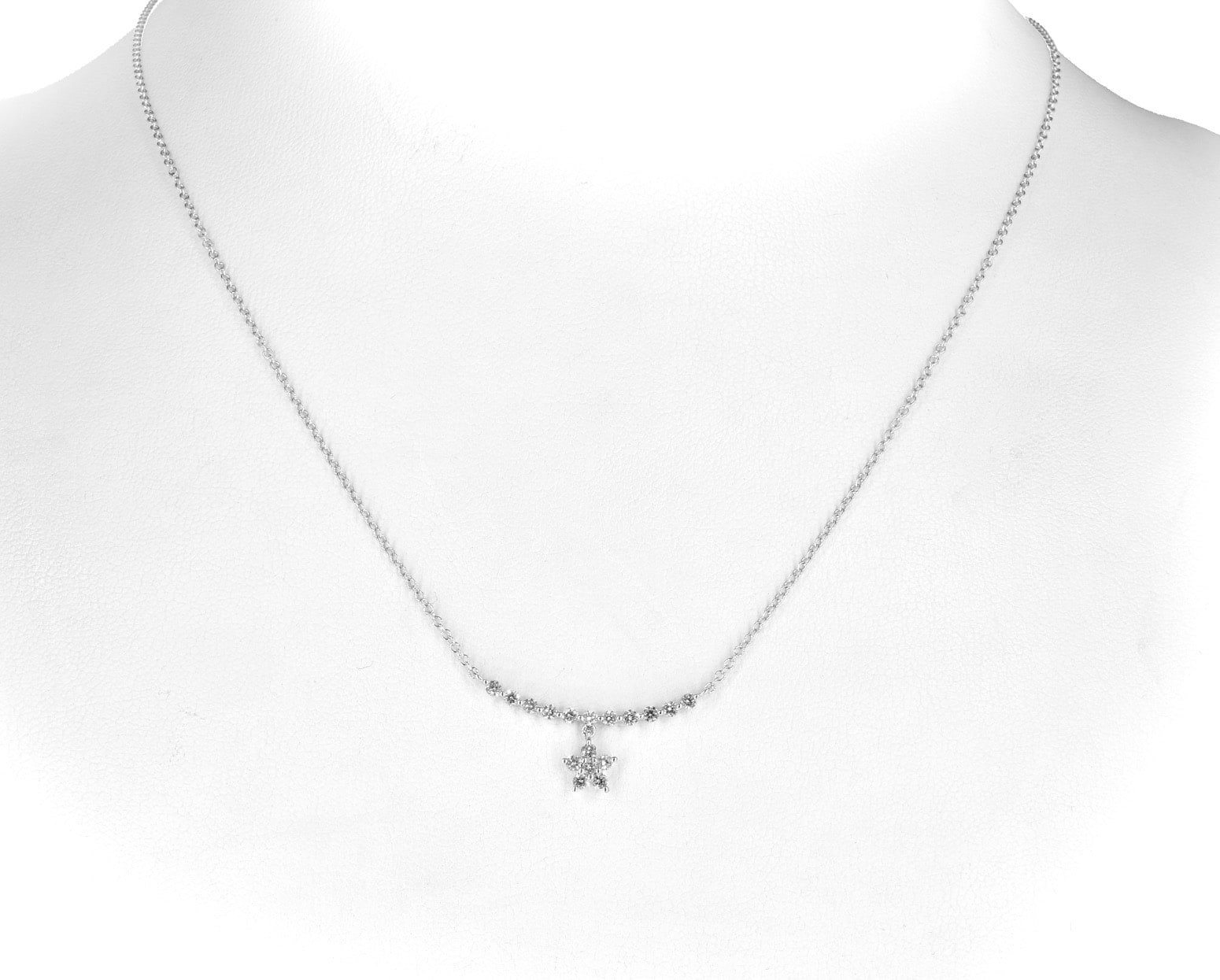 Al llevarlo, la estrellita vibra con cada movimiento y la línea de diamantes ilumina el pecho con un destello cálido y constante. La pieza se siente íntima y poética, un pequeño acento luminoso que acompaña el día con suavidad y evoca esa mezcla de sensibilidad y encanto que muchas mujeres buscan al elegir una joya especial.