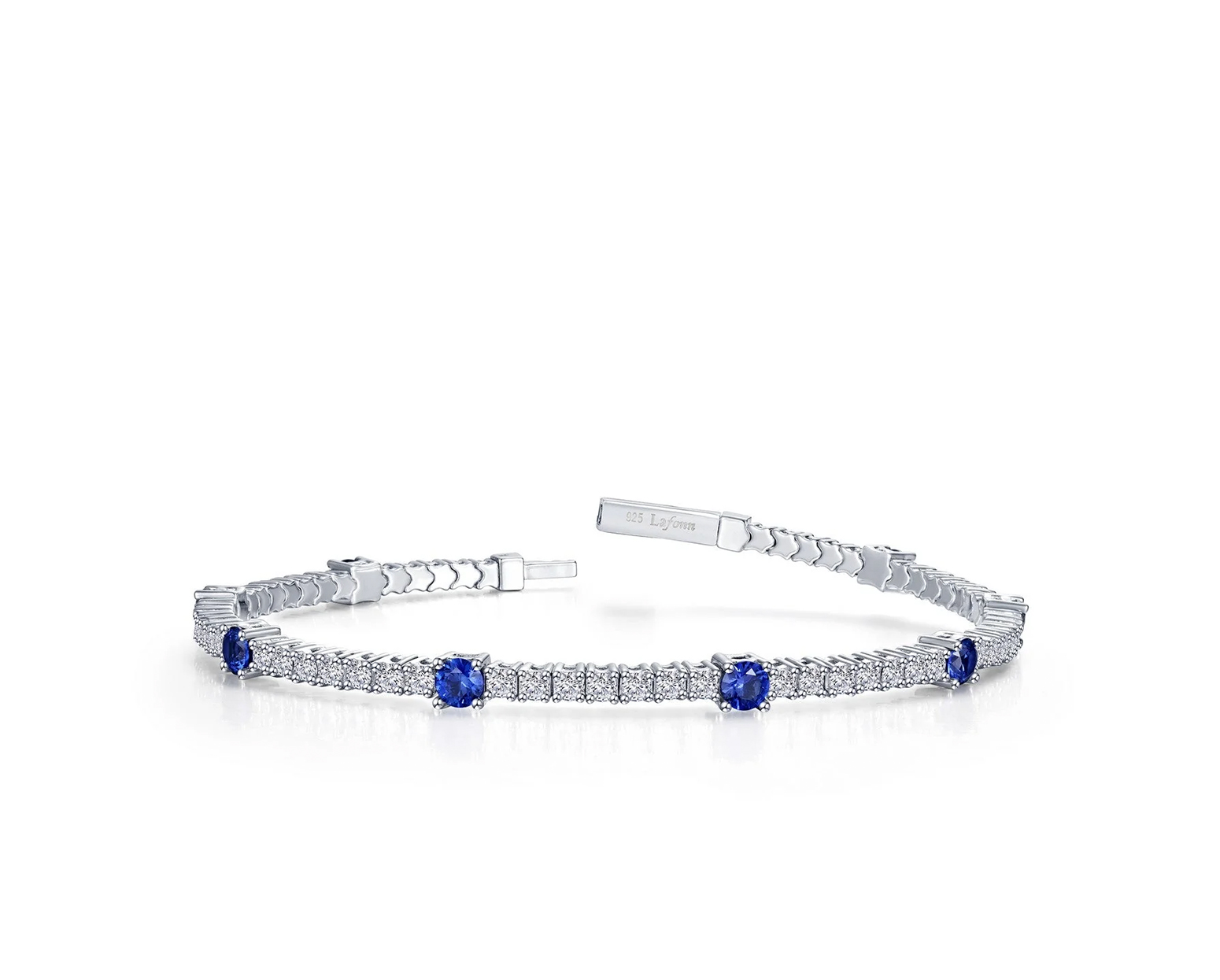 La Pulsera Lafonn Tennis Flexible Estaciones Zafiro combina una línea continua de moisanitas engastadas en uña con estaciones de zafiros azules más grandes, espaciadas de manera regular sobre una estructura delgada y totalmente articulada en plata con acabado de platino. El brillo frío del pavé y los destellos profundos del azul crean un contraste muy visible y elegante, ideal para mujeres de gustos glamorosos, que buscan piezas con luz protagonista y presencia definida sin perder fineza.