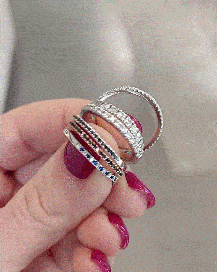 Prácticos y cómodos, con piedras engastadas al ras del metal, los cintillos son ideales para quienes usan sus manos constantemente. Acompañan con naturalidad el ritmo diario y lucen impecables junto a la argolla o al anillo de compromiso.