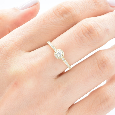 Podría ser considerado un solitario en el sentido de que la atención está puesta en su piedra central, pero lo que los distingue es el círculo de piedras pequeñas que la rodea como una aureola. El Solitario Grace es un ejemplo de esta categoría, donde el halo que rodea al diamante central ayuda a intensificar su brillo.